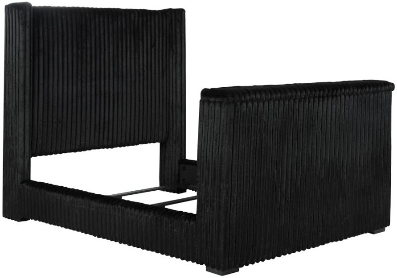 Unveil a new chapter of indulgence with this velvet wingback bed, where high style meets high tech. Richly upholstered in decadent black velvet, its vertical channeled frame embraces you in plush softness. Hidden within the footboard, a concealed TV lift fits up to 50-inch TVs and rises with the push of a button.Read More