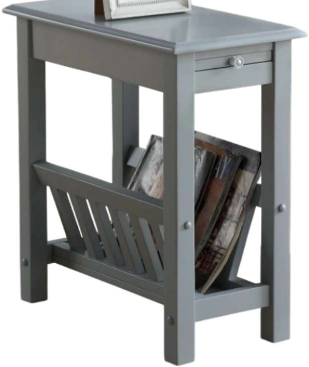 The TEI gray chairside table with magazine rack offers practical function and compact convenience. Perfect for small spaces, it provides a sturdy surface for essentials and built-in storage for magazines, making it ideal for living rooms or reading areas.Read More