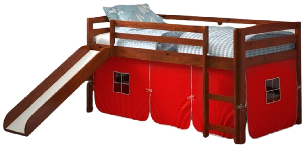 Mini loft with slide and red tent